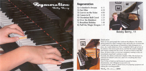 There are four great people that i dedicate this album to. My mother always pushed me when I wanted to stop, and on the rare occasion that I would want to stop because of frustration or lack of progress on a piece, she would remind me of how wonderful it felt to get in front of an audience, bust out my great pieces, and hear the sound of applause and whistles coming from the crowd. As soon as I think of days like those, all desire to quite, or even just a temporary wanting to stop are immediately erased and I continue to work.